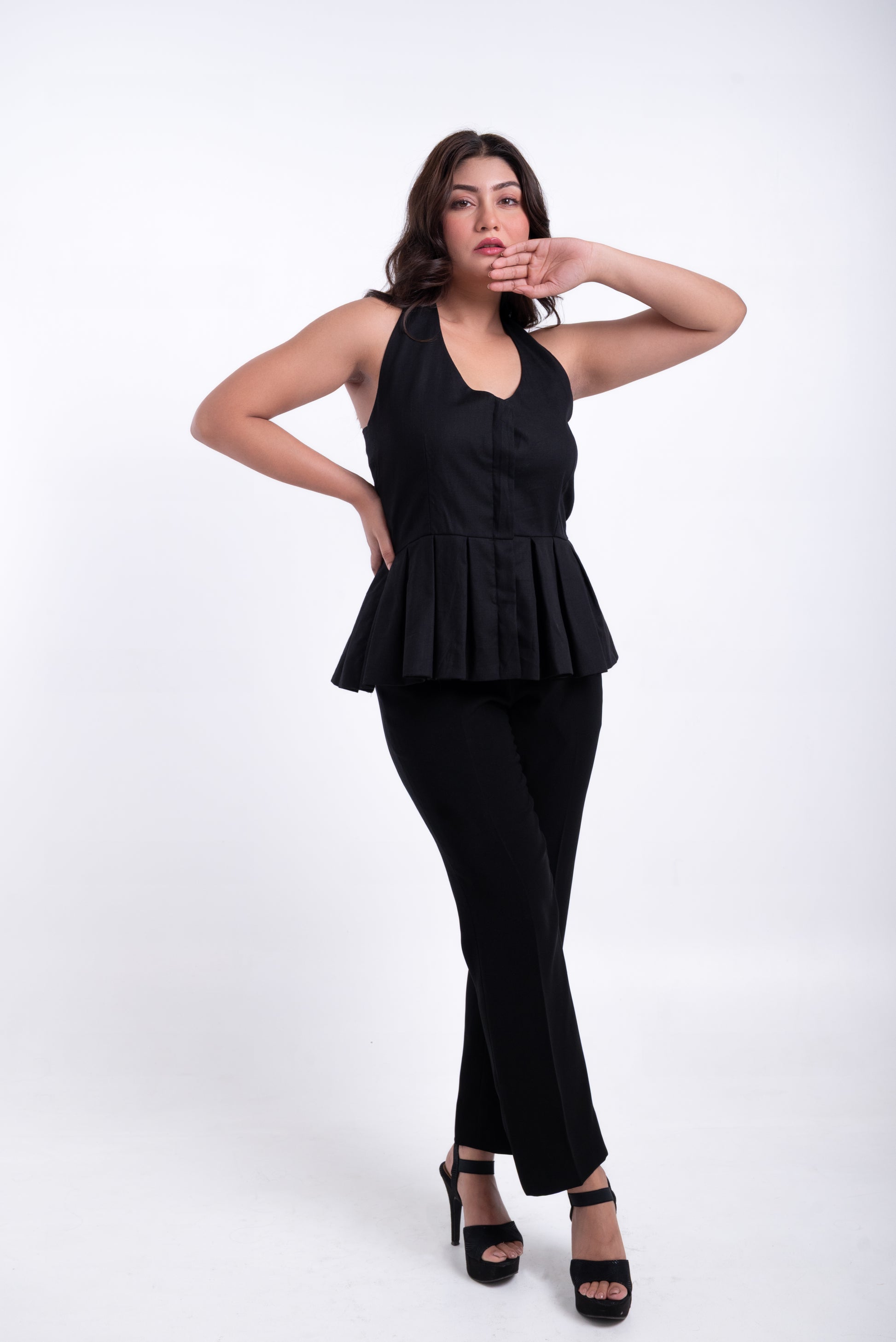 DESCRIPTION - A sculptural expression of feminine strength. The Sculpt Noir Top features a beautifully shaped neckline and precision pleats that enhance movement while defining the waist. Crafted for versatility, it shifts from desk to dinner as effortlessly as the woman who wears it.